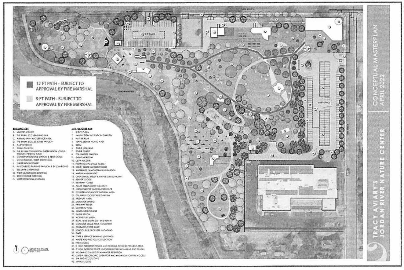 Turf grass is prohibited between the JRNC Nature Center fence and the public right of way. The JRNC Nature Center shall install a rock mulch base in all landscaped areas and shall include live plant material that covers 75% of the area at maturity. Live plant material shall be selected and installed to discourage camping and loitering along the perimeter of the development.