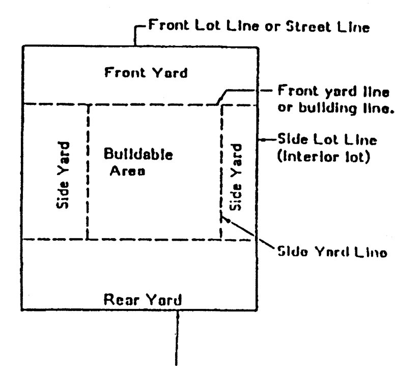 Yard measurement. In measuring a yard, the building line shall be deemed to mean a line parallel to the nearest lot line drawn through the point of a building or the point of a group of buildings nearest to such lot line, and the measurement shall be taken at right angles from the building line to the nearest lot line.