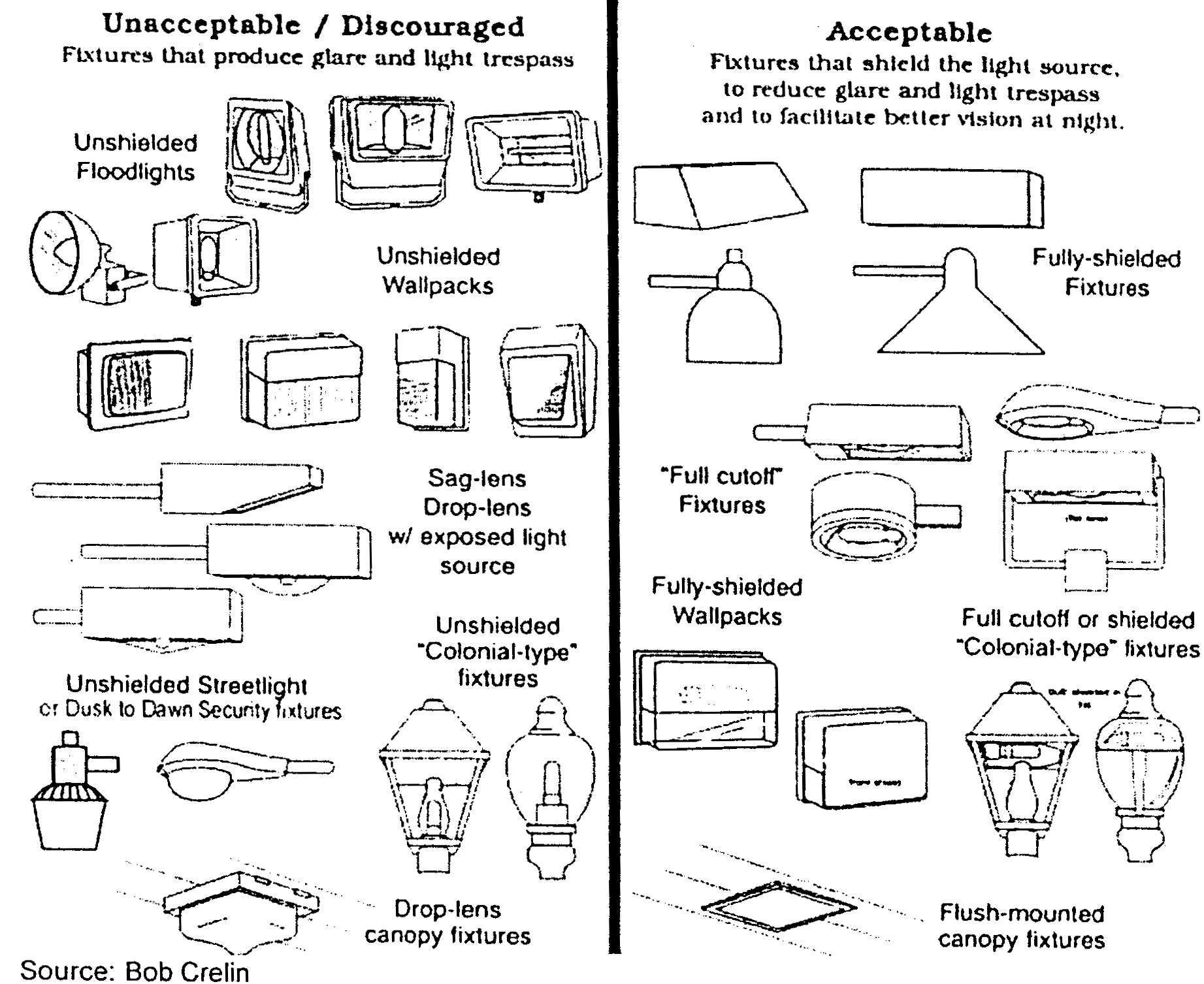 Light fixtures shall be shielded, such as by visors or baffles, to control spillage of light beyond the outside edge of the object intended to be illuminated.