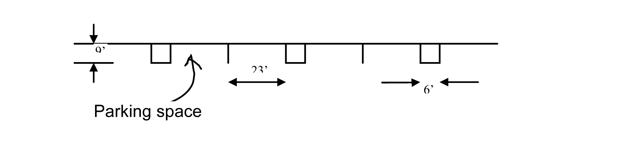 The minimum size (in feet) of a parking space shall be as follows: