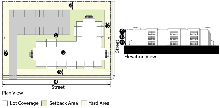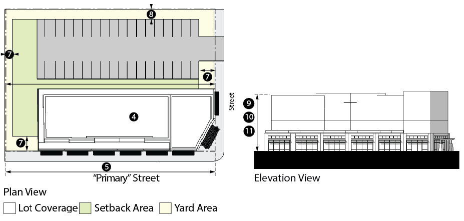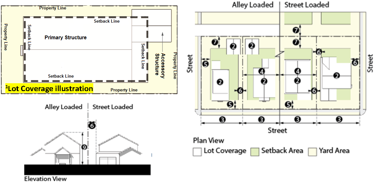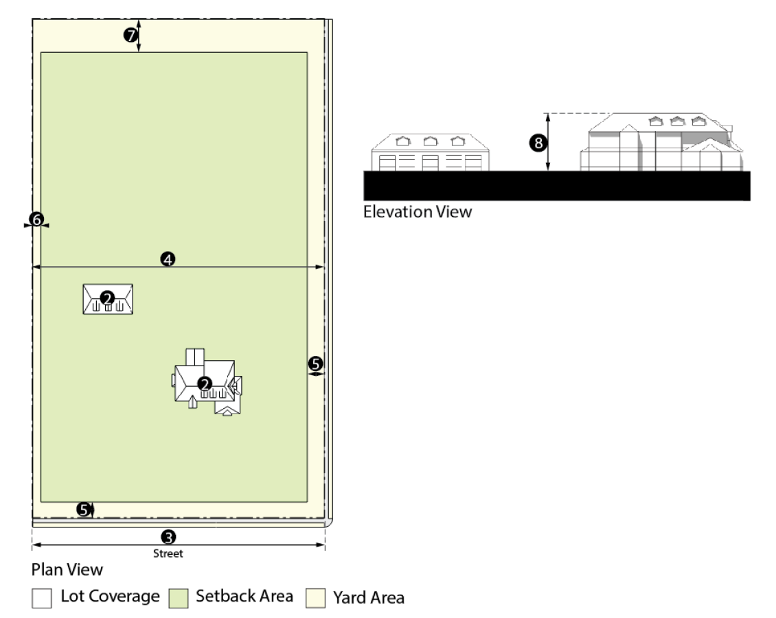 *Setbacks listed above are intended to create a building envelope. Development within the envelope may create zero lot line development.
