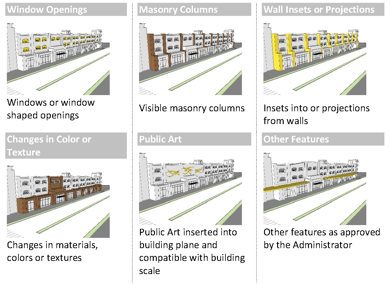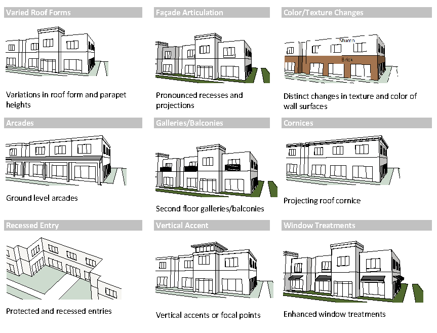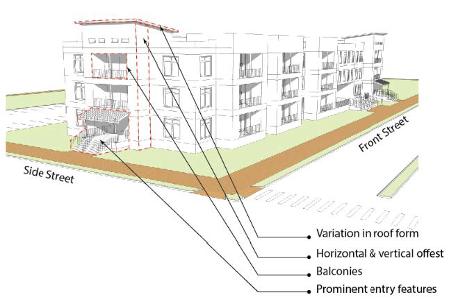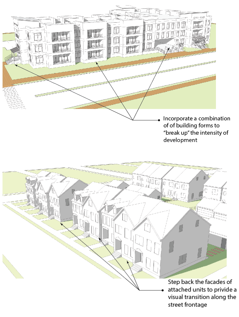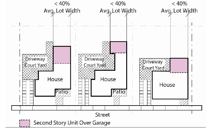 Purpose: These standards ensure that the relationship of units to each other and to other on-site uses are functional, attractive and create visual variety along the project's streets. Variation of development patterns within sub-divisions achieves visual diversity and avoids the appearance of monotonous development.