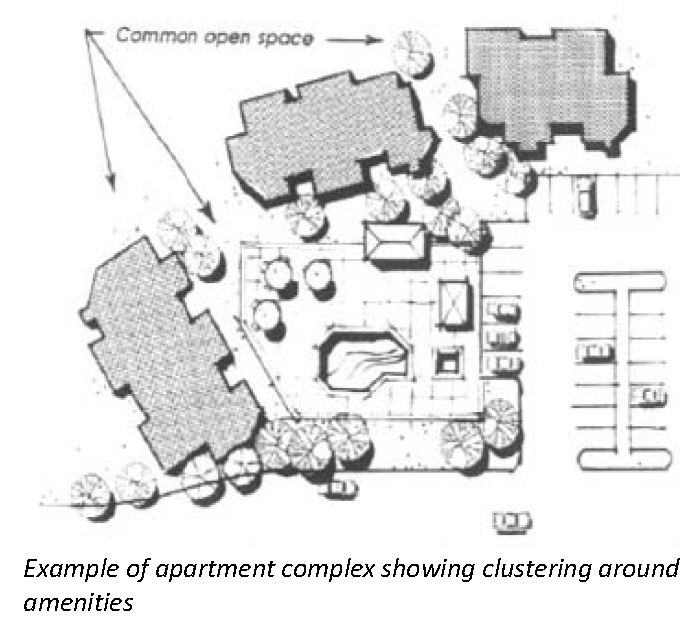 Buildings shall be oriented in such a way as to create courtyards and open space areas. Clustering of multi-family units shall be consistently planned throughout the development.