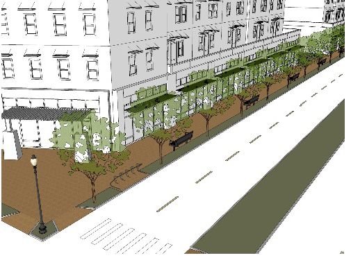In order to encourage front porches as a dominant feature for the street facade, and the connectivity of this space into the street neighborhood, front porches shall be allowed to encroach into the front yard setback five feet;