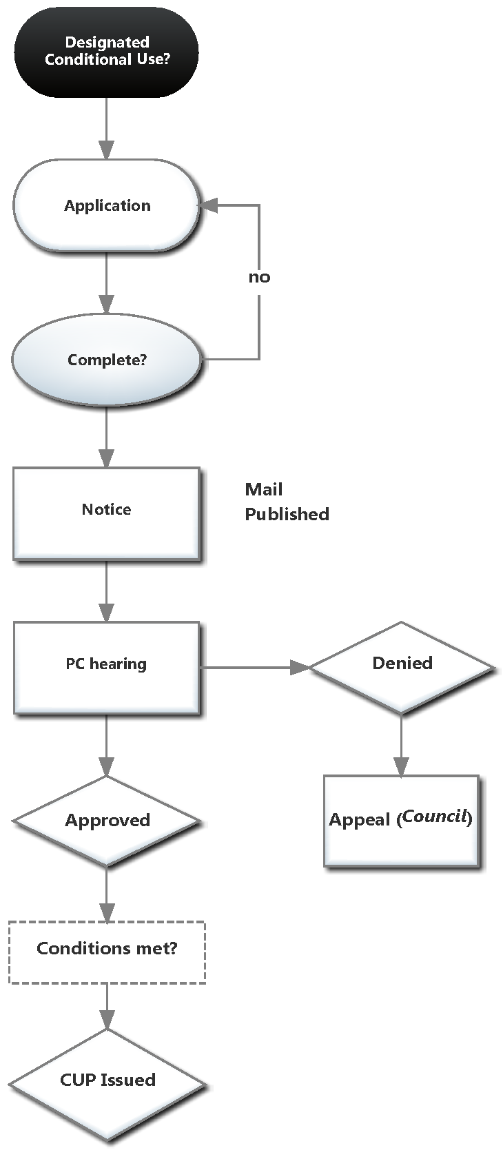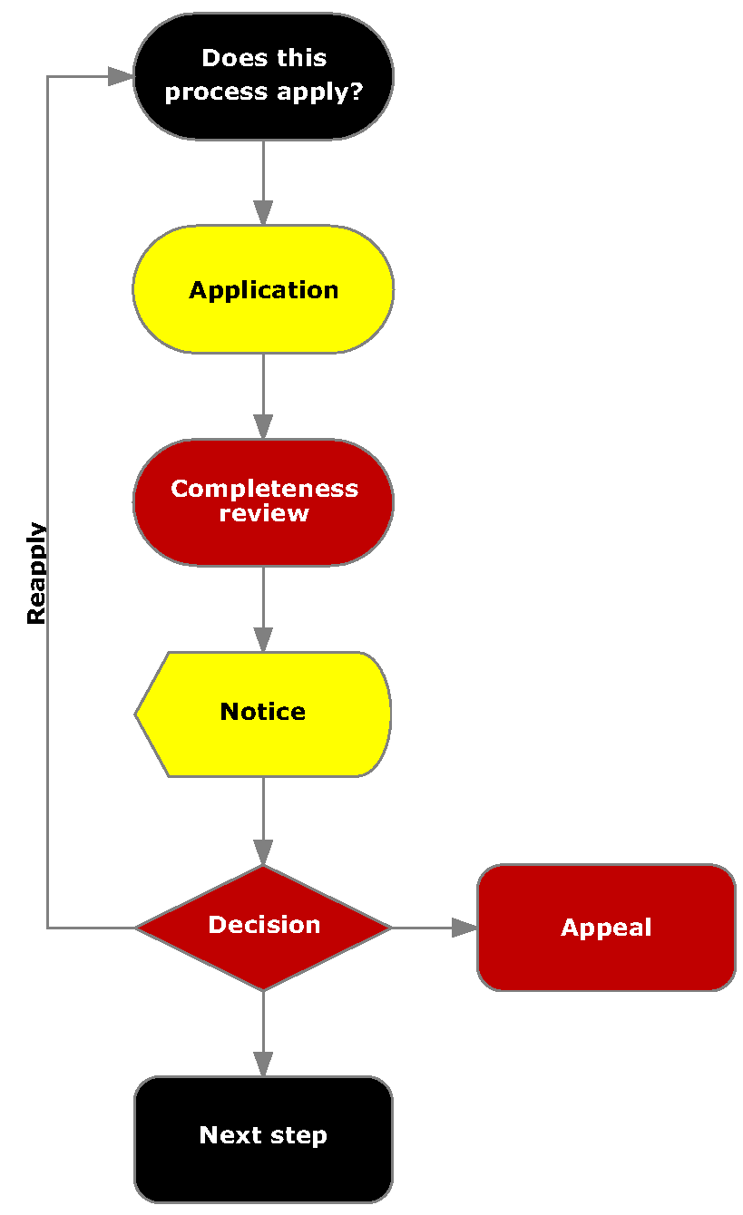 Process Elements. This chapter sets up rules for procedures, such as pre-application, neighborhood notification, notices and public hearings. It then describes the process for specific land use decisions. The procedures all have a common workflow and description, as follows: