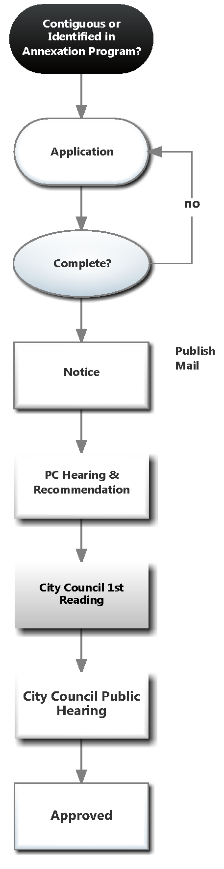 The City Council will approve deny with or without prejudice, table or continue the Annexation.