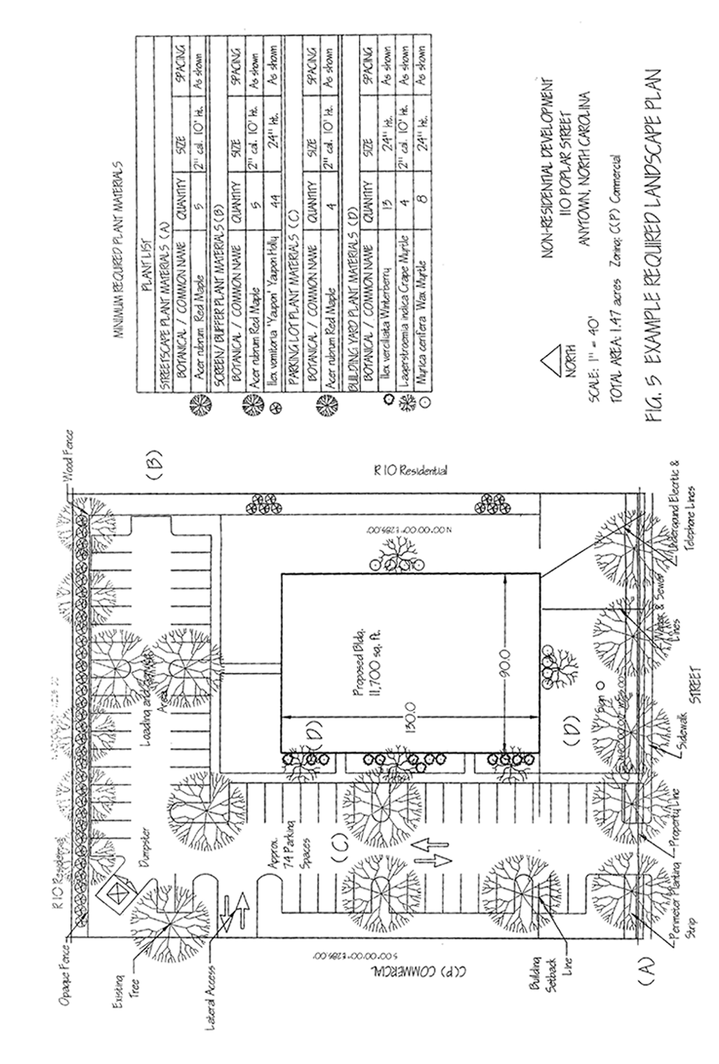 Any site plan pursuant to section 42-359(b), concerning approval of plans, shall include a landscape plan (except all residential development, excluding manufactured home parks and multifamily development). A plan of the property at a scale of one inch equals 50 feet or larger shall be submitted as part of and in accordance with section 42-359(b), concerning approval of plans. The plan shall be labeled "Landscape Plan" and shall include the following: