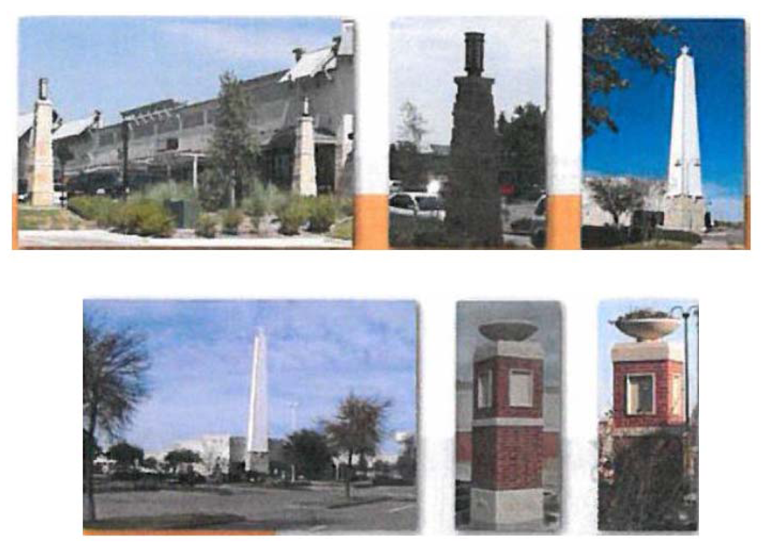 Highway icons. Obelisks, towers, freestanding columns or other vertical freestanding elements.