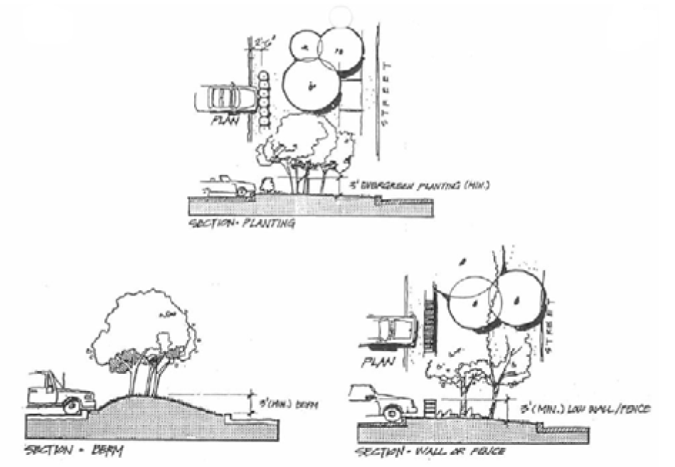Landscaping—Buffers and screening. Street buffers section 2.5g of this article and section 2.5g(2) parking lot screening.