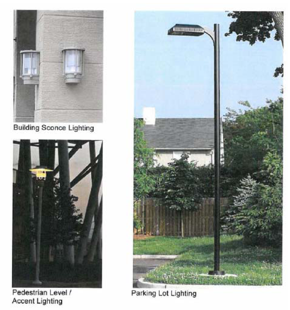 No exposed Neon or LED "strip" or "accent" lighting is allowed on the building or adjacent facades. Neon or LED within a cove, which hides the lamp source but allows light to spill outward on the building face, may be allowed with specific approval.