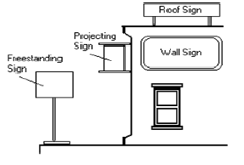 Free-standing signs. Pylon; gateway; icon; monument, kiosk, sandwich board.