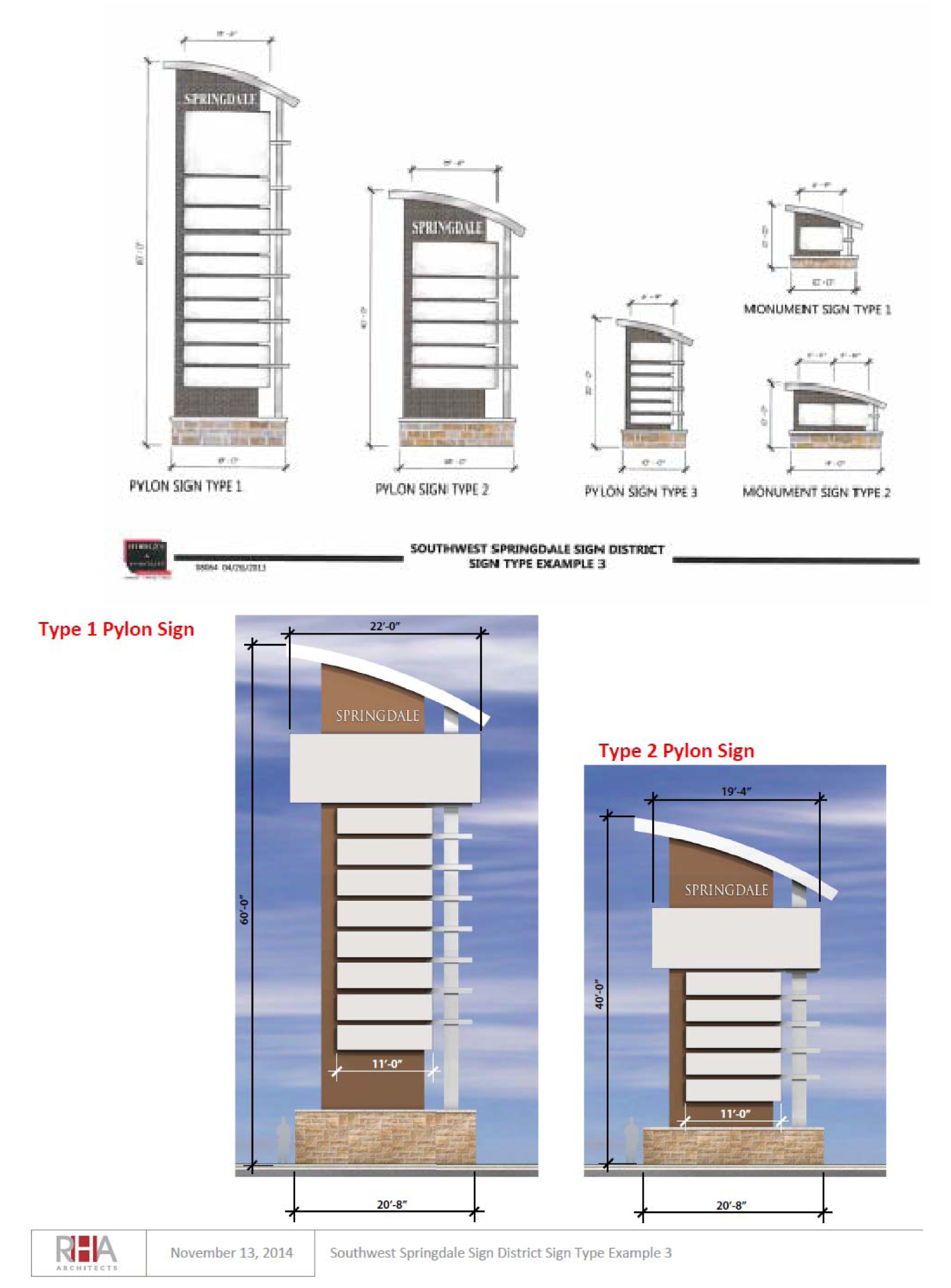 Pylon sign type 1. See examples in section 3.8c(5) for sign design.
