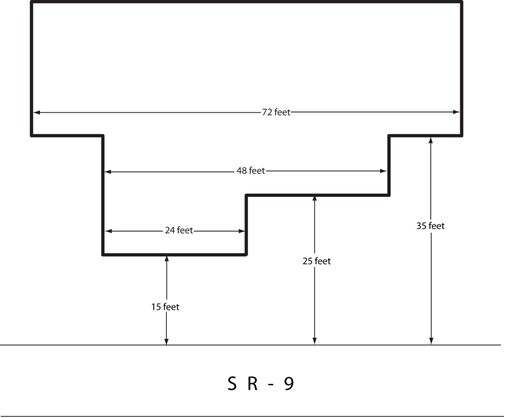Note: Properties with less than 100 feet of frontage on SR-9 are allowed the building wall frontages shown in the right column of the table above.