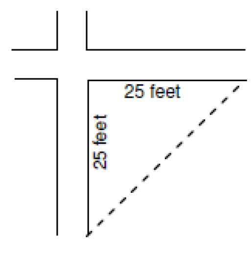 The following regulations shall apply to all corner lots, within the triangle formed by the street front and side lot lines and a line connecting these lot lines at points measured along these lot lines a distance of twenty-five (25) feet from their intersection (see diagram):
