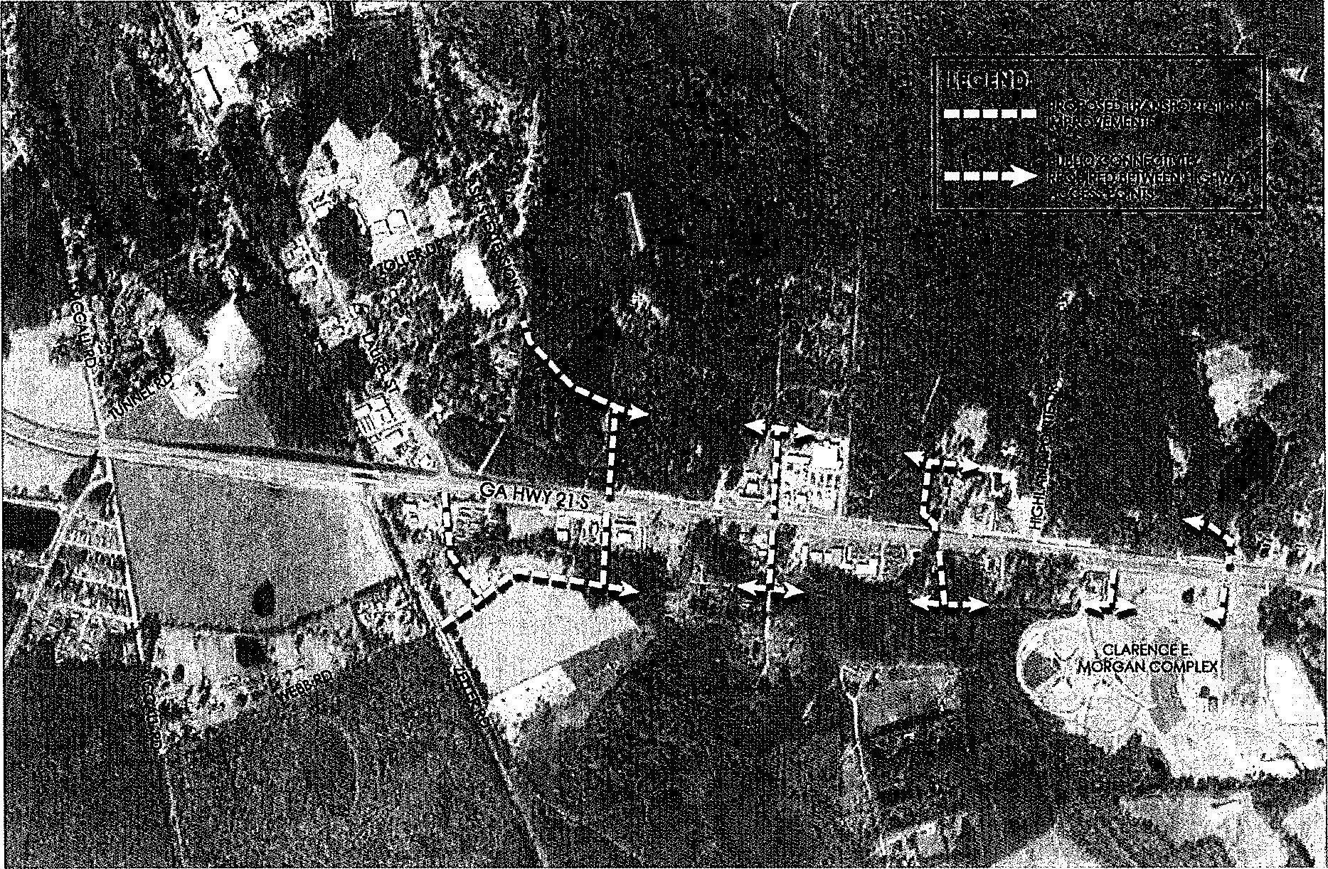 The intent of the Overlay District is to limit access to Hwy 21 to predetermined locations as shown. Inter-parcel connectivity should then be accessed primarily from the Hwy 21 Connector Streets. The public street network expansion may be similar to the exhibit shown here: