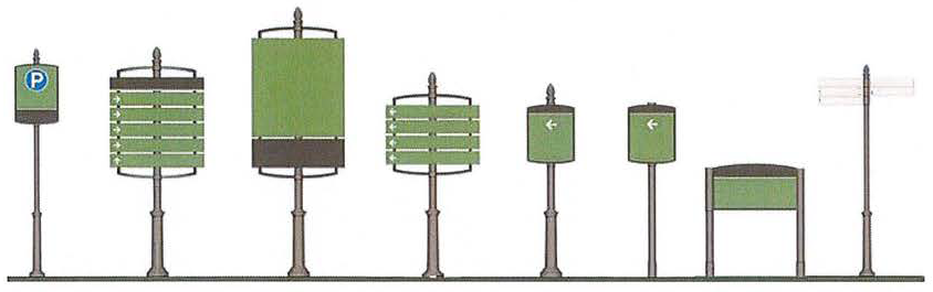 Proposed and existing sign locations;