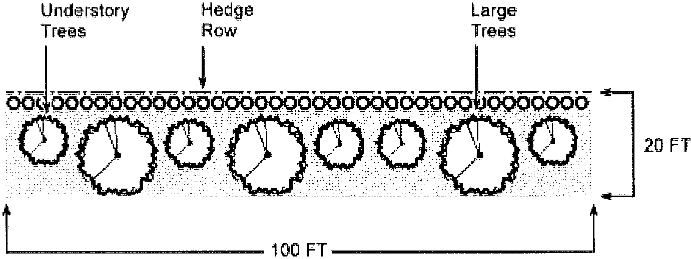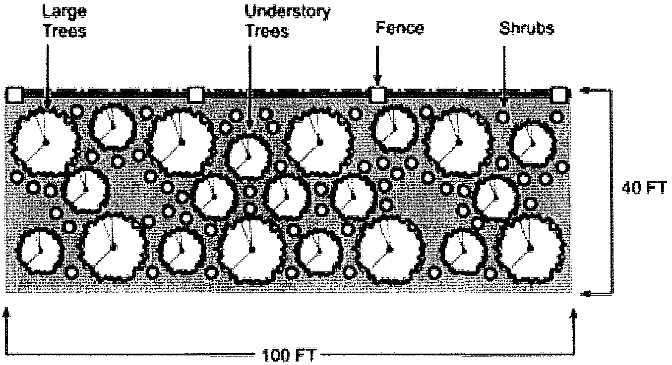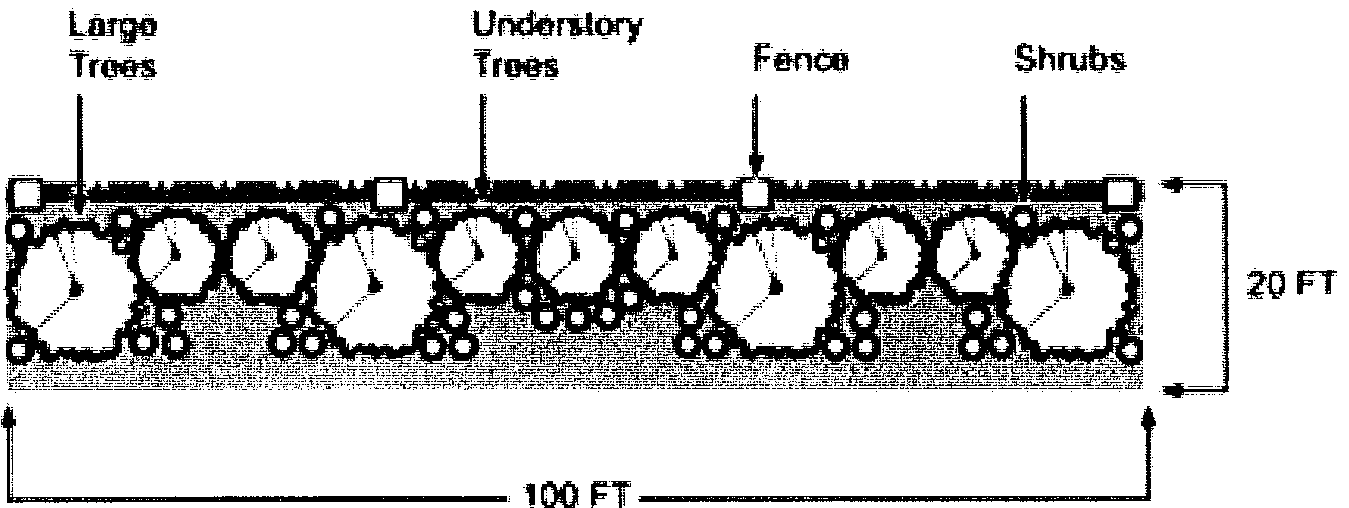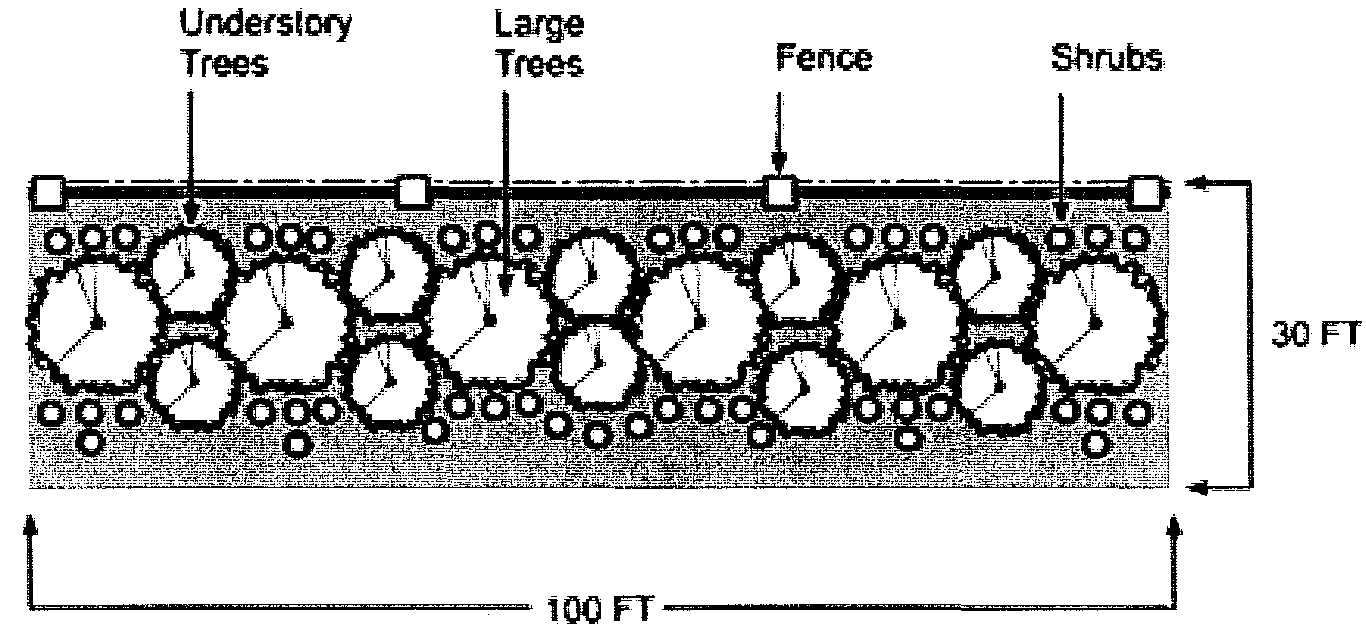 The use buffer plan shall show in detail the layout of the proposed development including the arrangement of buildings, structures, parking areas, permanent open spaces, and the location of proposed buildings and of existing or proposed buildings on adjacent properties. The plan shall also show the location of proposed buffers including a detailed description or sketch of such buffer materials to be used. Where trees or shrubs are required for a use buffer, the use buffer plan shall include a provision for an irrigated water source capable of watering vegetation within the use buffer.