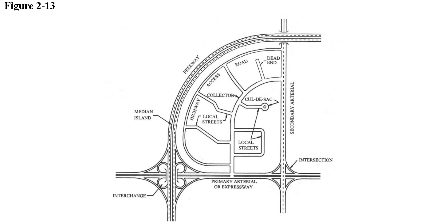 Street: A public or private way used, or intended to be used, for passage or travel by motor vehicles. Streets are further classified by the functions they perform as follows (Figure 2-13).