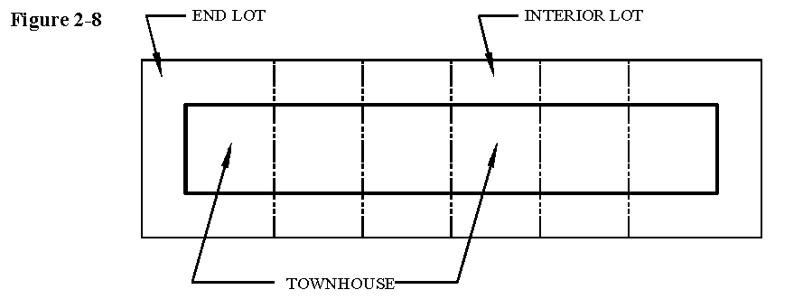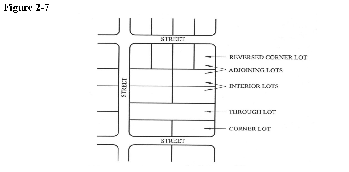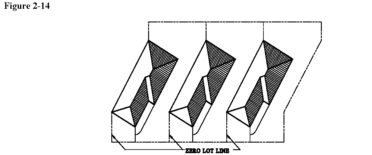 Zero lot line: The location of a building on a lot in such a manner that one or more of the building's sides rests directly on a lot line (Figure 2-14).
