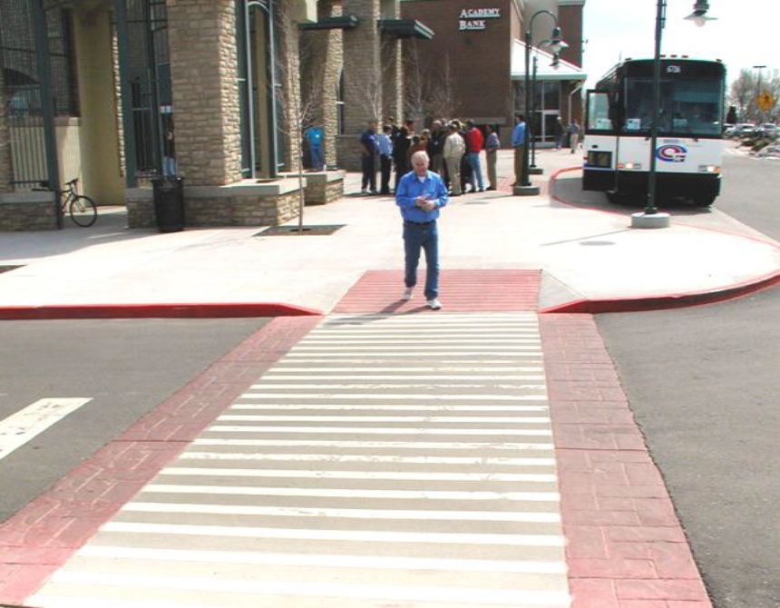 Design and landscape pedestrian ways with attractive paving materials, shade trees, street furniture, scenic views and other amenities to facilitate and encourage walking between uses.