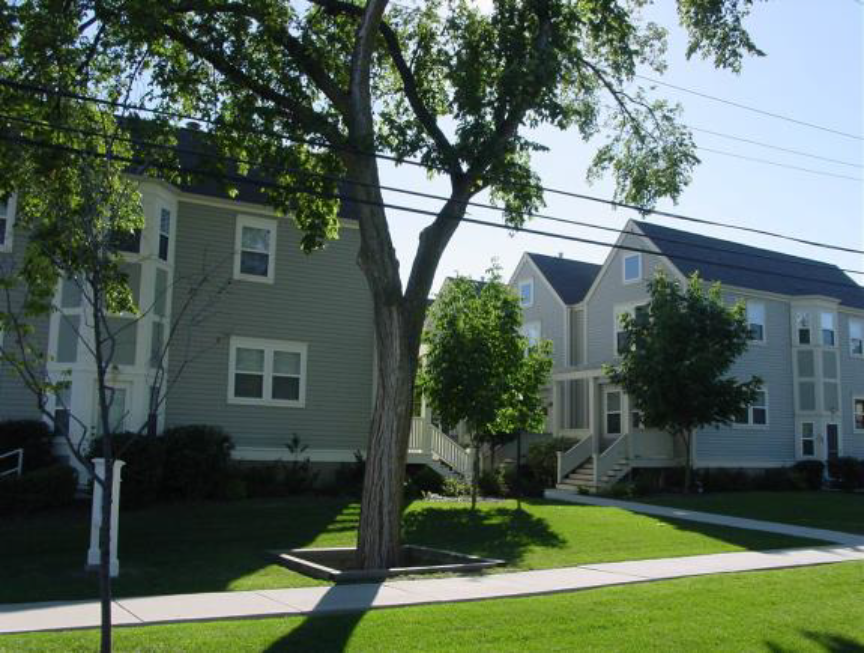 Parking lots and garages for multi-family developments should be located to the rear or side of the lot, in areas that are less visible from the street. Large parking areas should be broken into smaller segments.