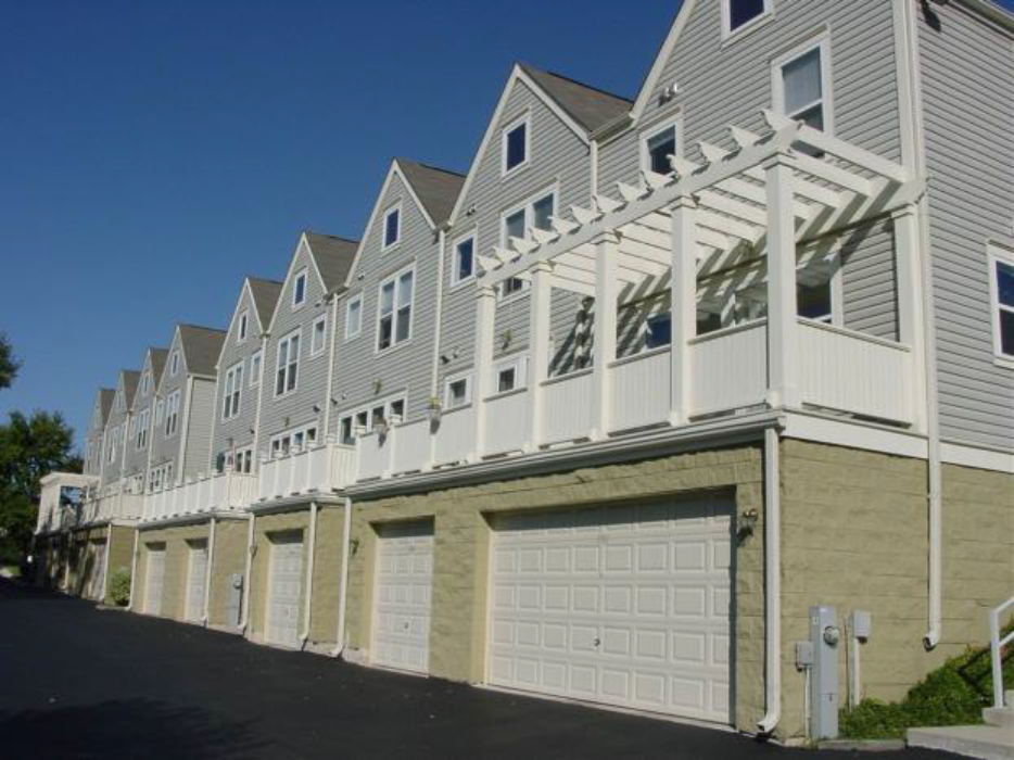 Townhouses should be designed with garages to the rear of the units or, if located at the front of the units, designed so that garages do not form the most prominent visual element of the façade.