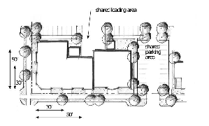 Where parking abuts the site perimeter there shall be provided at least one overstory tree per forty (40) feet of site perimeter.