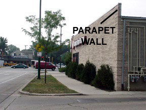 Sign, Roof. Any sign wholly erected, constructed or maintained upon or above the roof or parapet parapet of any building, with the principal support attached to the roof structure.
