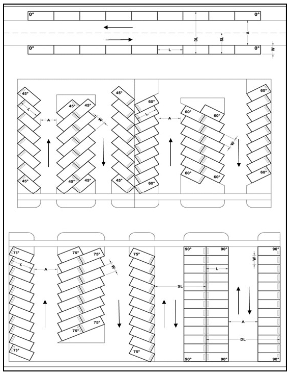 Dimensions. At minimum, off-street parking spaces must be designed in accordance with the figure 113-681(1) and table 113-681(1) below: