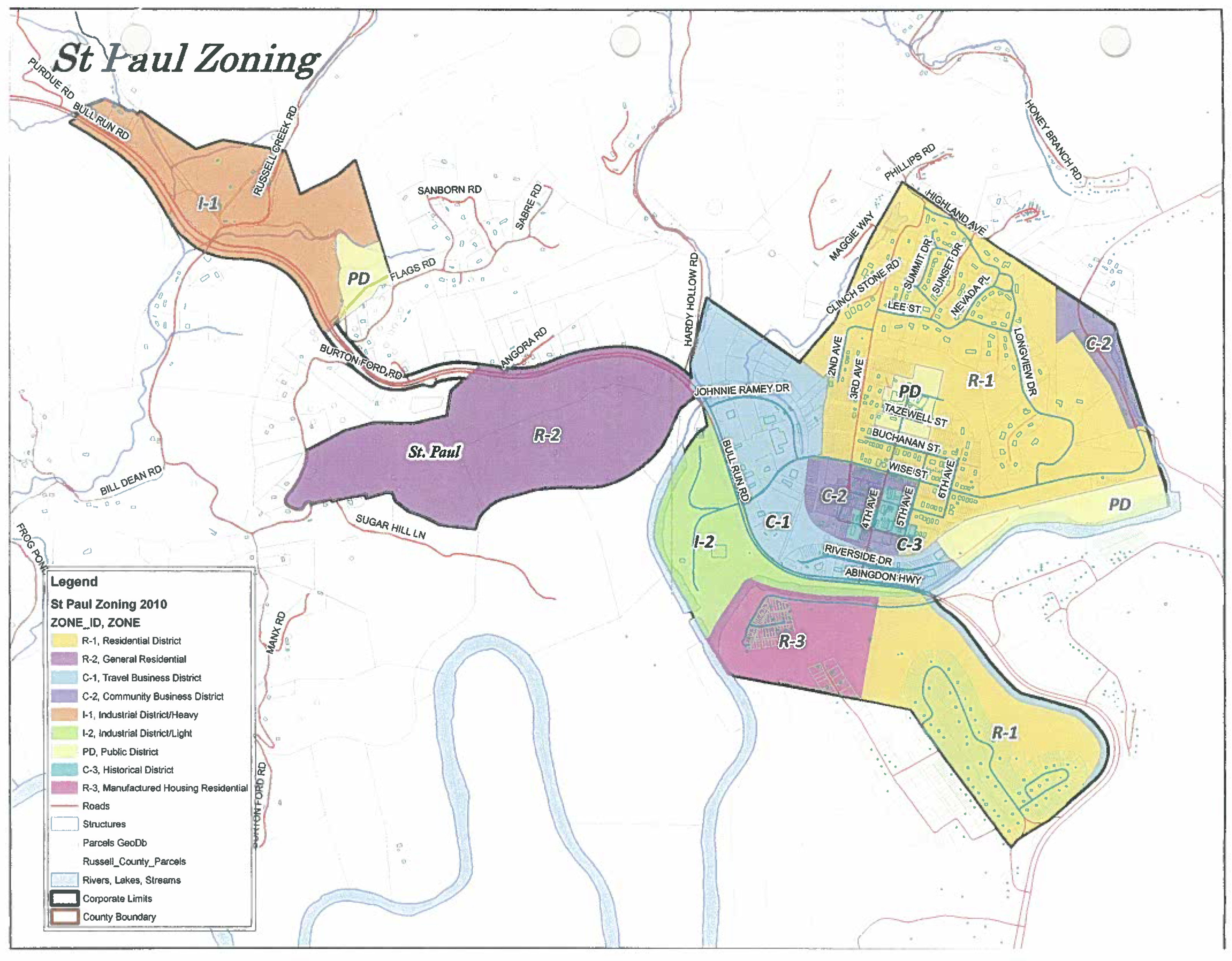 For the purpose of this chapter, the incorporated area of St. Paul, Virginia, is hereby divided into the following districts: