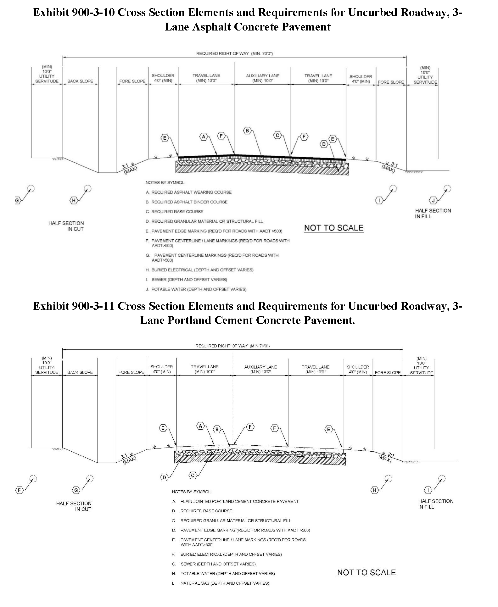 Sewerage utilities shall be located outside of streets for all new developments. Water utilities shall be located on the opposite side of the road as sewerage utilities. Sewerage utilities may be located under bike paths, sidewalks, incidental paving, driveways, and parking areas.