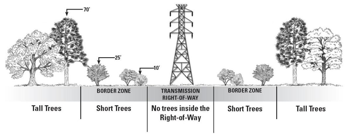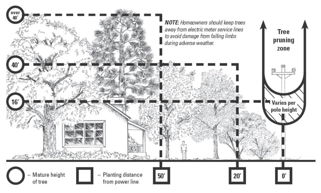 Planting trees adjacent to transmission lines. Trees planted adjacent to transmission lines and rights-of-way shall be planted according to the following graphic: