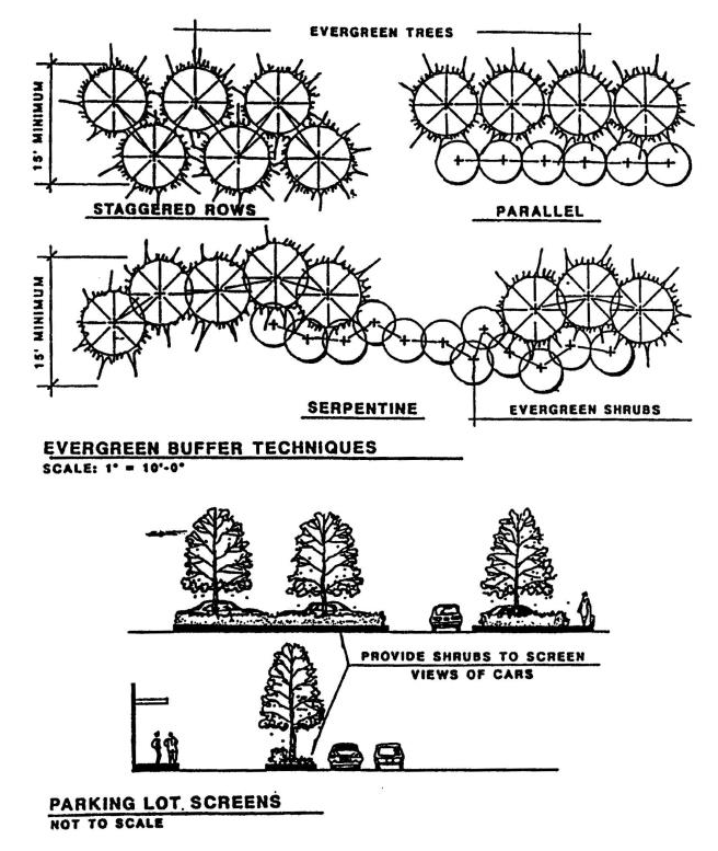 Screening Evergreen and Parking