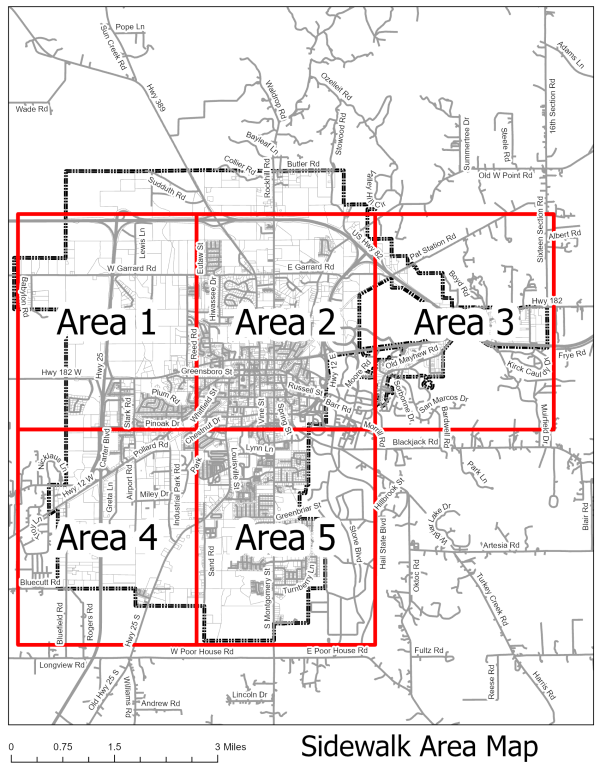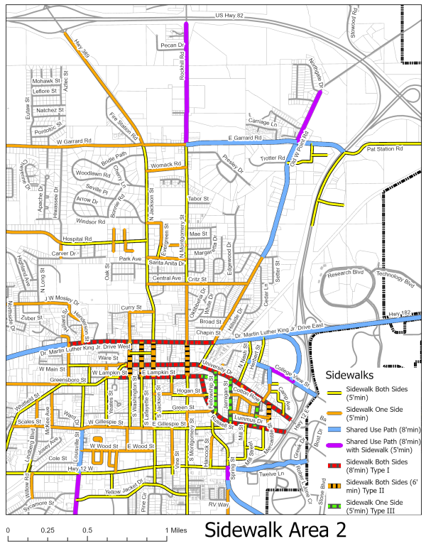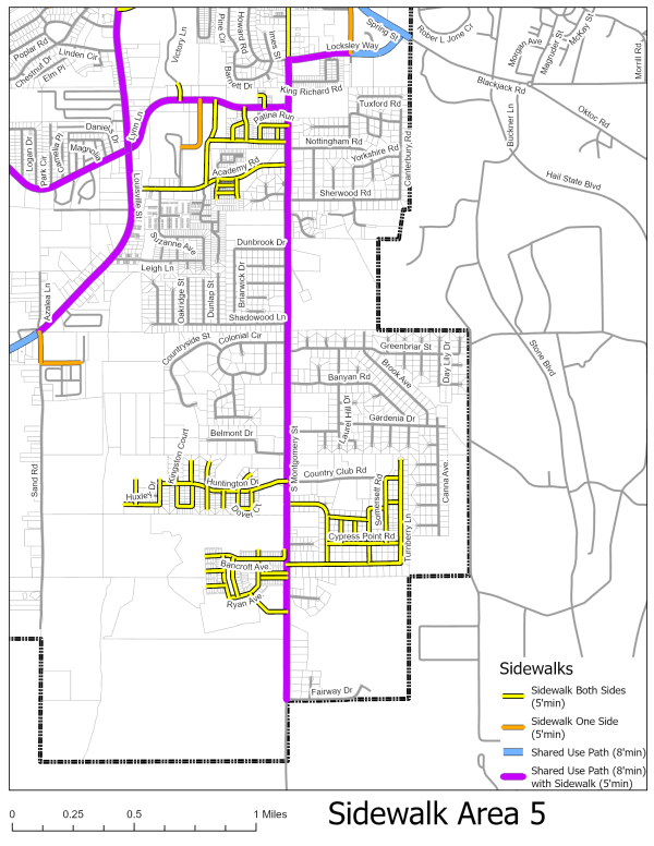 | Sidewalks shall be broom finished concrete designed and finished to match adjacent sidewalks. The use of asphalt and gravel is prohibited. | ⬛ | ⬛ | ⬛ | ⬛ | ⬛ | ⬛ | ⬛ | ⬛ | ⬛ | ⬛ | ⬛ | -- | -- | -- | -- | ⬛ | ⬛ | ⬛ | -- | ⬛ | ⬛ | -- | ⬛ | ⬛ |