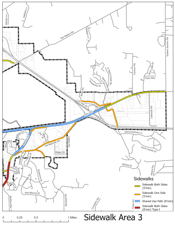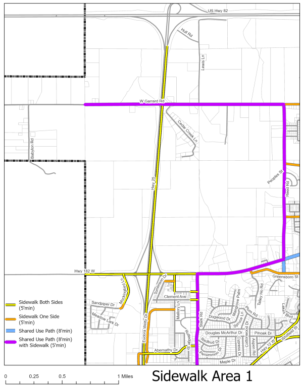 | Sidewalks shall be broom finished concrete designed and finished to match adjacent sidewalks. The use of brick pavers or concrete pavers shall only be allowed with the approval of the City Engineer. The use of asphalt and gravel is prohibited. | -- | -- | -- | -- | -- | -- | -- | -- | -- | -- | -- | ⬛ | ⬛ | ⬛ | ⬛ | -- | -- | -- | ⬛ | -- | -- | ⬛ | -- | -- |
