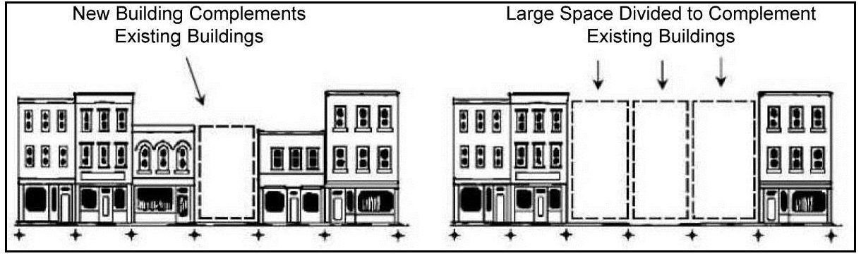 Ensure that buildings relate appropriately to surrounding developments and streets and create a cohesive visual identity and attractive street scene.
