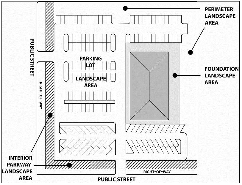 Types of landscaped areas. This article regulates landscaping of four distinct areas of a parcel as follows: