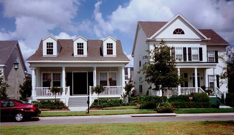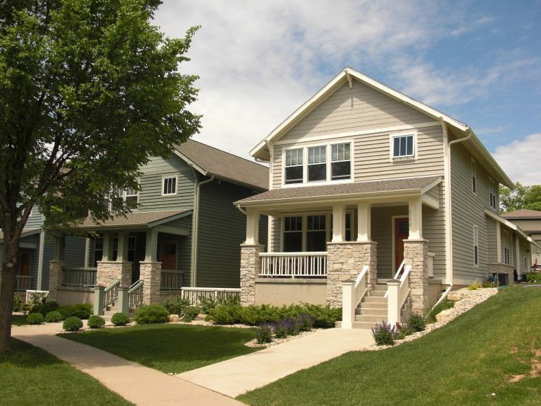 Streets are lined with sidewalks and well placed trees and landscaping, and are fronted by porches, balconies, and entries rather than garage doors and wide driveways.