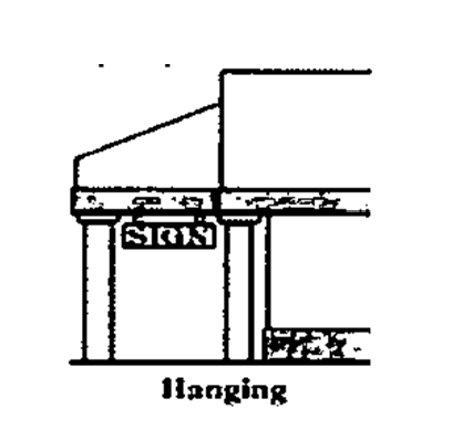 "Hanging sign" means a sign that hangs beneath a marquee, canopy, or awning and is perpendicular to the building face. Also known as a blade sign. See also "mounted signs."