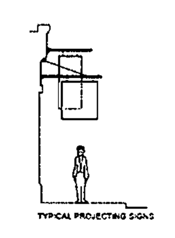 "Projecting sign" means any sign which is attached perpendicular to a building or other structure and extends beyond the line of the building or structure or beyond the surface of that portion of the building or structure to which it is attached. Also called a shingle sign. See also mounted signs.
