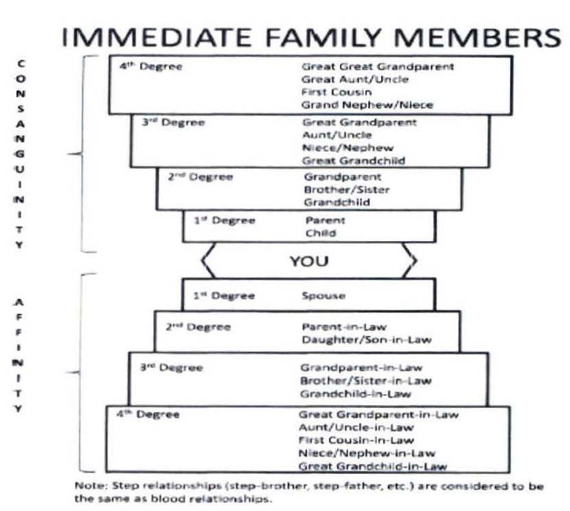 Principal occupants. The owners of the property in which the accessory dwelling unit is permitted shall occupy at least one of the dwelling units (accessory or principal unit) on the premises, except for bona fide temporary absence. The occupants of the remaining unit must be related within four degrees of consanguinity of the owner-occupants of the property as demonstrated in the chart below.