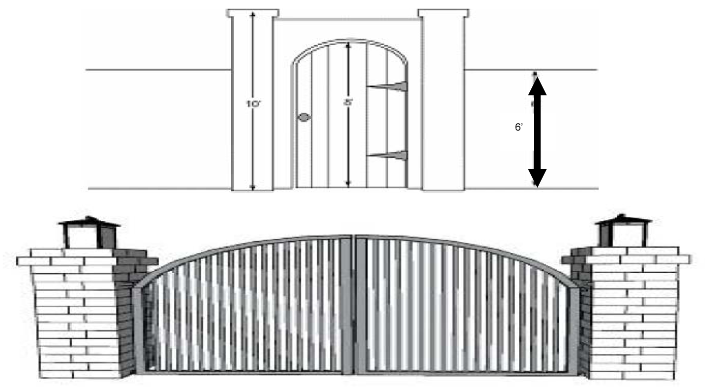 Figure 12.6: The gate designs are examples where maximum height limitations for fences