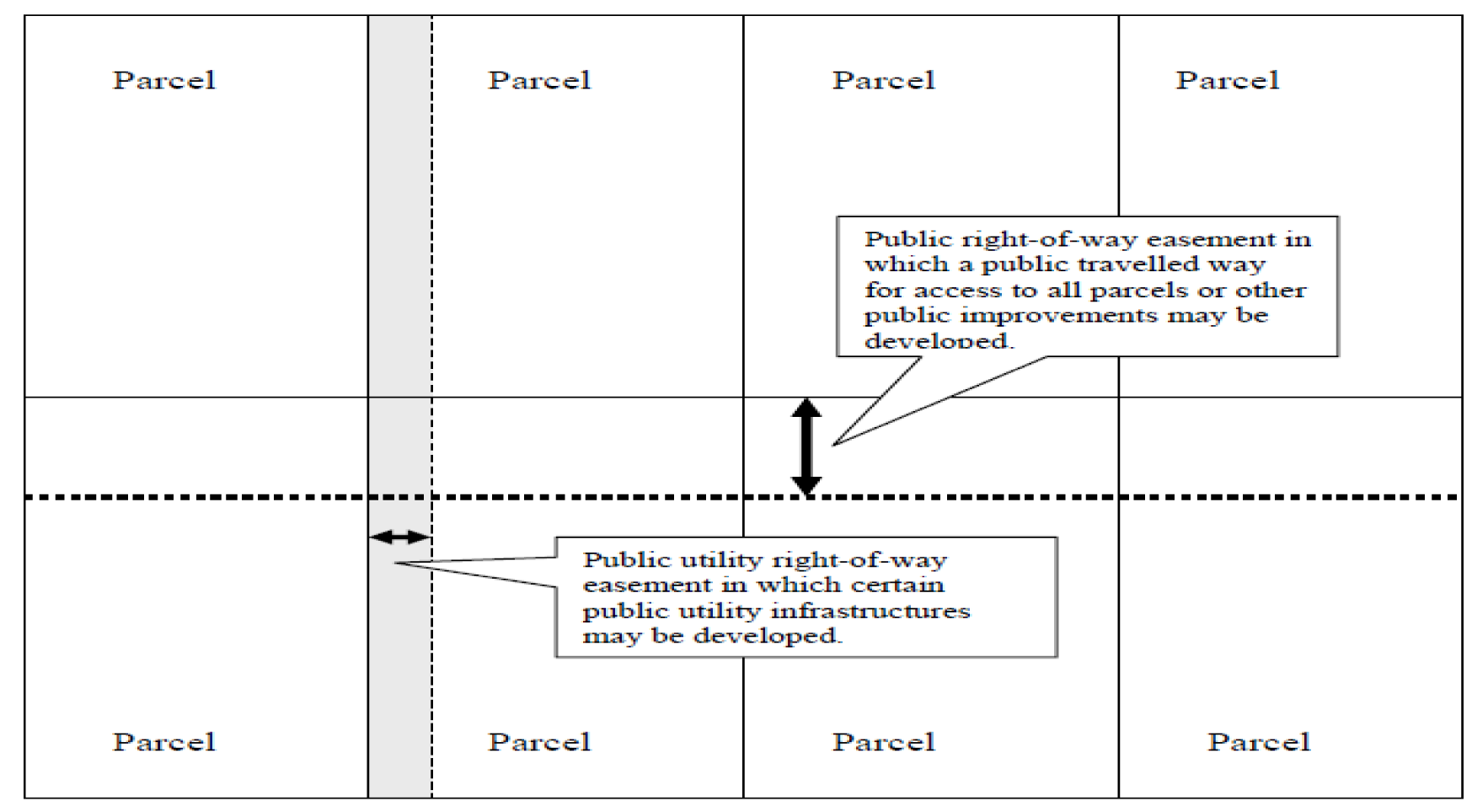 Figure 12.8: In the case illustrated above, only the lower parcels include easements