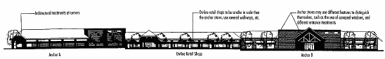 Each principal retail anchor shall have a clearly defined, highly visible customer entrance with features such as canopies or porticos, arcades, arches, wing walls, and integral planters.