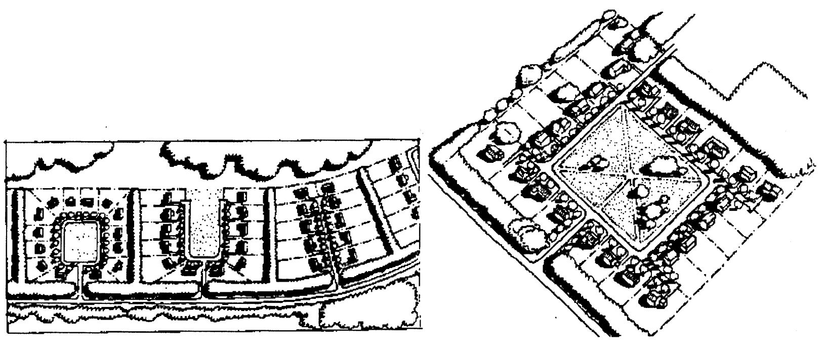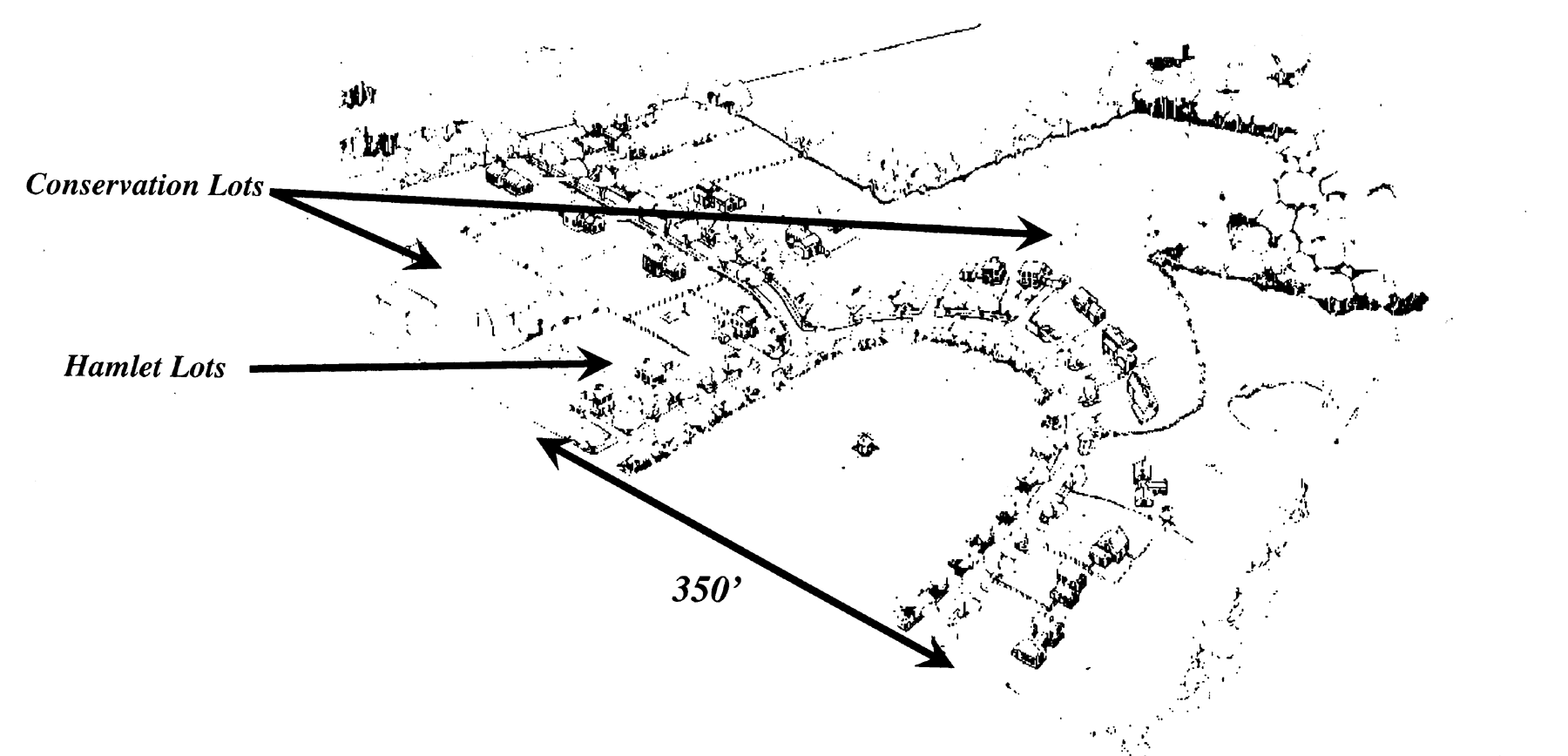 Illustration of Rural Hamlets surrounding a close or a village green. Source: Randall Arendt, Rural by Design (Chicago: American Planning Association, 1995), at 302. Reprinted with permission of American Planning Association.