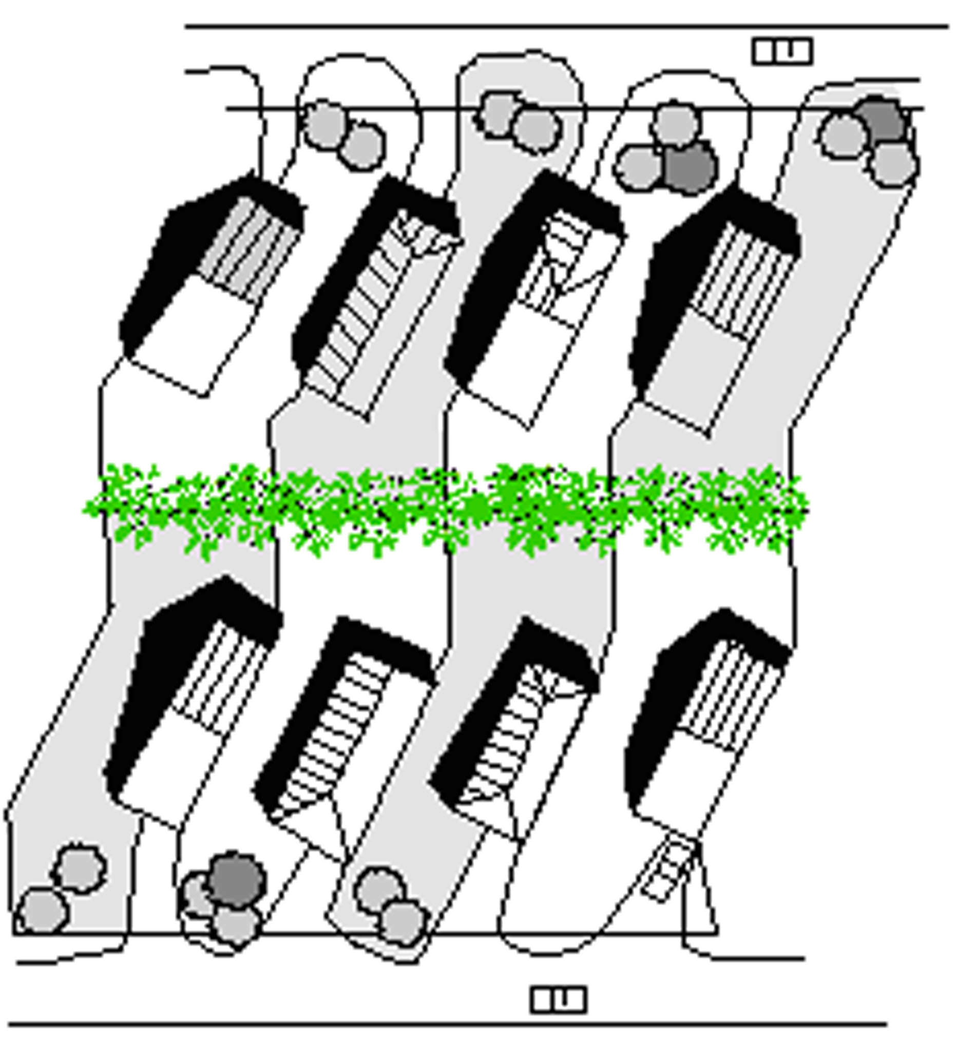 The principal entrance of all of the Hamlet lots shall be oriented to the street right-of-way. The maximum distance between the building envelope of Hamlet lots facing across a green or square shall be 350 feet.