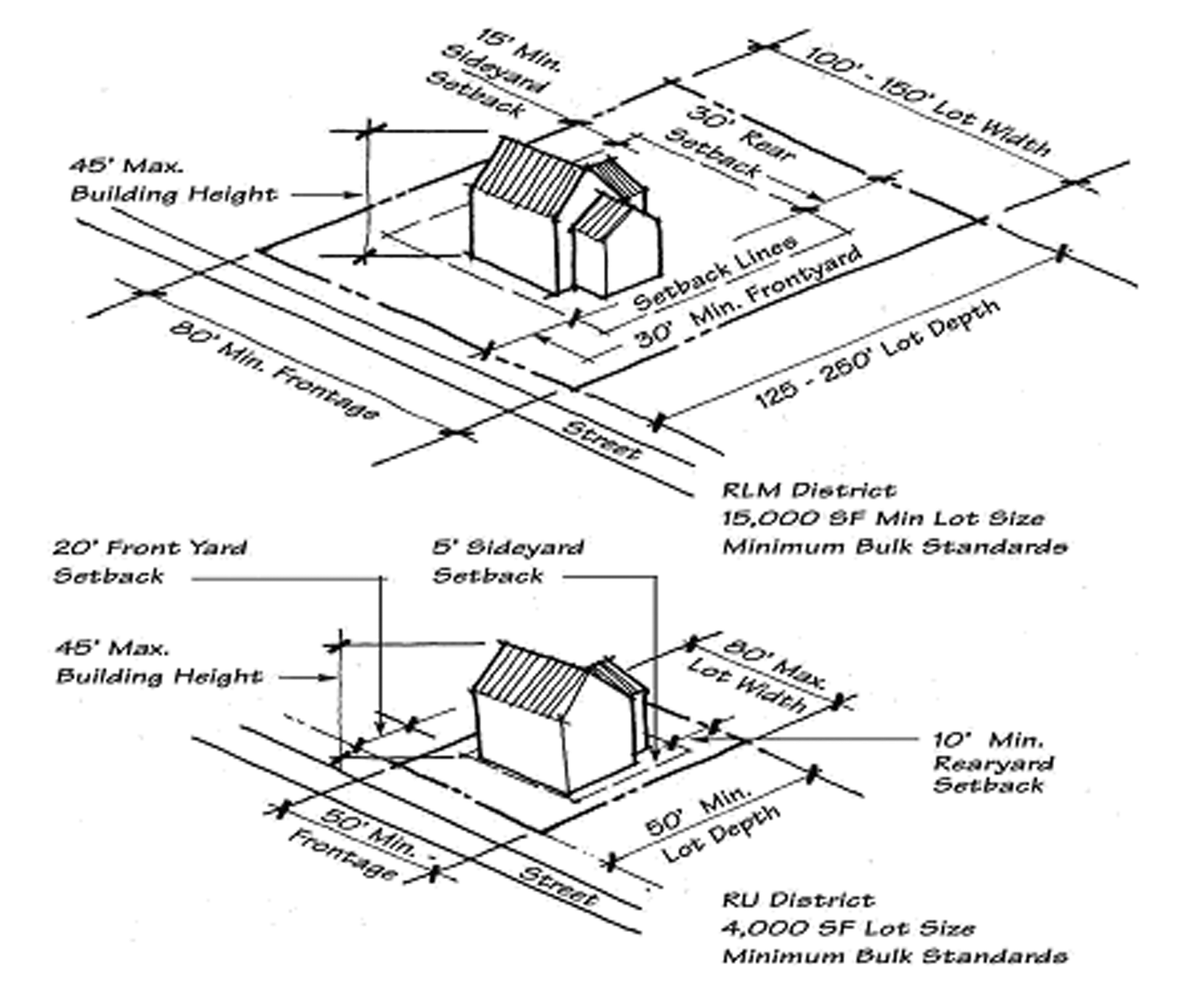 DIMENSIONAL STANDARDS. TABLE 407-1 lists the dimensional standards that apply within zoning districts. These are required standards, not guarantees that stated minimums or maximums can be achieved on every site. Other regulations of this Ordinance or site-specific conditions may further limit development on a site. The standards apply to all uses unless otherwise expressly provided in this Ordinance. Article 6 of this Ordinance provides additional or supplemental standards for alternative lot patterns. In Table 407-1, the following figures are expressed in feet: The minimum setback for the CBD and VC districts apply only to the first twenty (20) feet of building height in order to assure the provision of adequate sidewalk and planting strips.