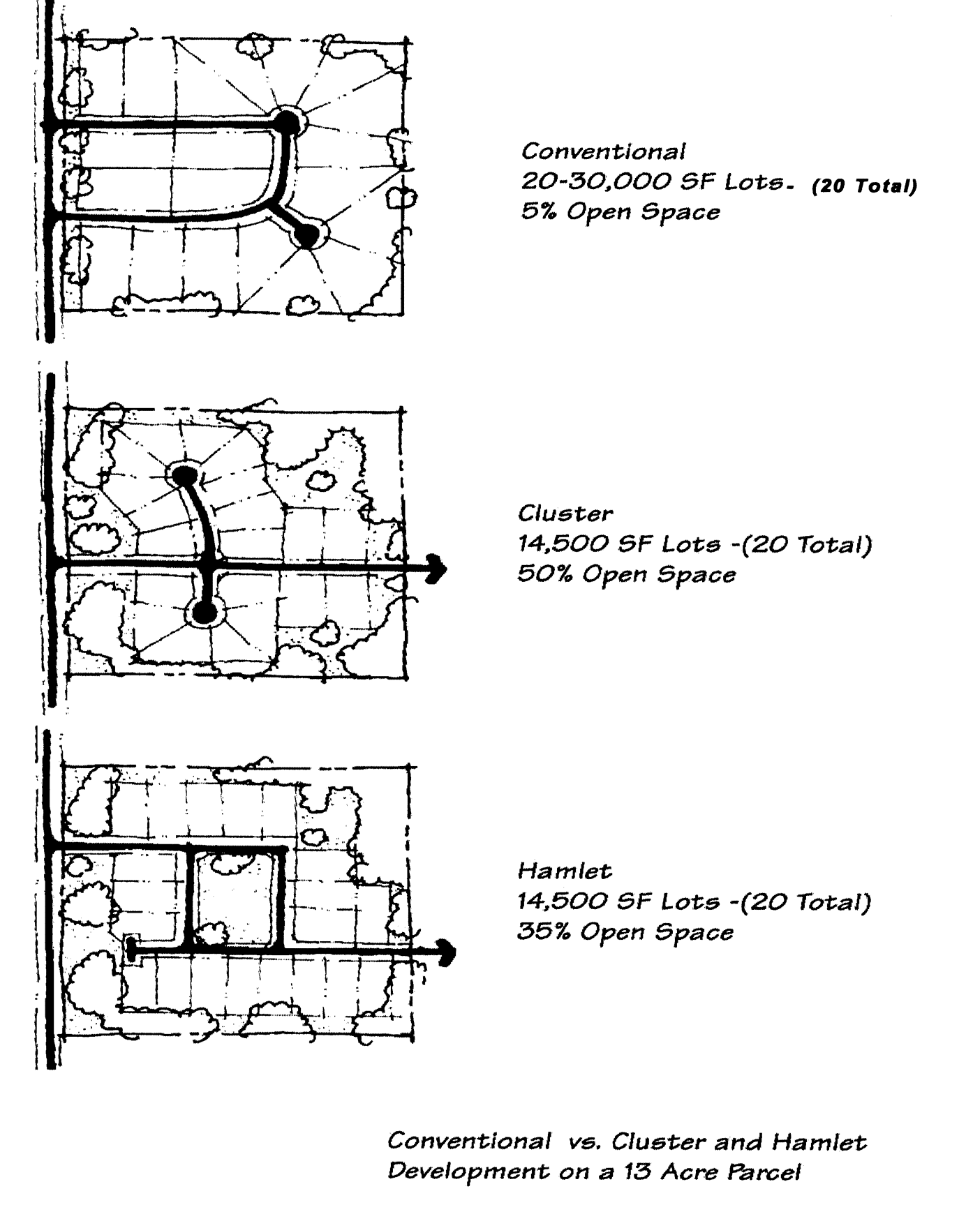 TOTAL PERMITTED DWELLING UNITS. For conventional option developments, the Ordinance does not establish a maximum or minimum number total permitted dwelling units, because total number of dwelling units will be governed by minimum lot size. For cluster, hamlet or TND option developments, no minimum lot size is required (except as may be provided in Section 31-411 of this Ordinance), but total permitted dwelling units shall not exceed the amount established in this Subsection. (Additional dwelling units for conventional, cluster, hamlet or TND option developments may be permitted pursuant to Section 31-409 of this Ordinance). For purposes of this Subsection, "gross acres" or "gross acreage" refers to the total area (in acres) within the outer property boundaries of the parcel subject to an application for development approval (see "A" in the formula below). "Net acres" or "net acreage" refers to the gross acreage (in acres) exclusive of critical areas and road or street rights of way, as defined by the equation "A - C - R" in the formula below. "Gross density" refers to the number of dwelling units per gross acre. "Net density" means the number of dwelling units permitted per net acre. Unless otherwise stated, all references to density in this Ordinance refer to gross density. Total permitted dwelling units shall be calculated as follows: