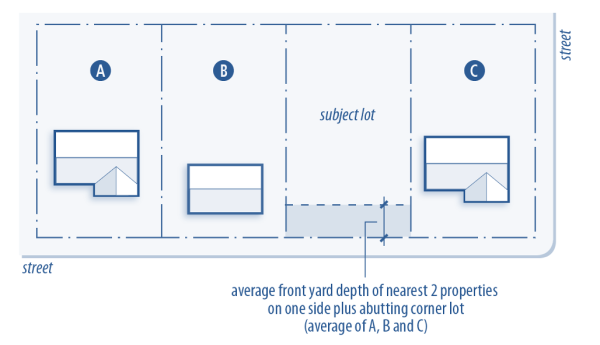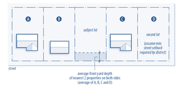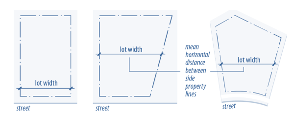 Lot width is measured as the average (mean) horizontal distance between the side property lines of a lot.