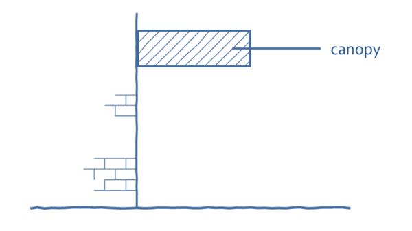 Canopy: A permanent structure that consists of an overhanging shelter connected to a building and constructed of materials such as wood or steel studs covered with wood or other material and that may or may not be supported by vertical columns. See Figure 20-5.
